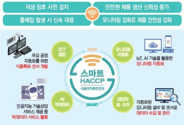 스마트 해썹은 사물인터넷(IoT)을 활용해 식품 제조 주요 공정 정보를 자동으로 기록·관리하고 평가함으로써 자료의 위·변조를 방지할 수 있는 시스템이다.