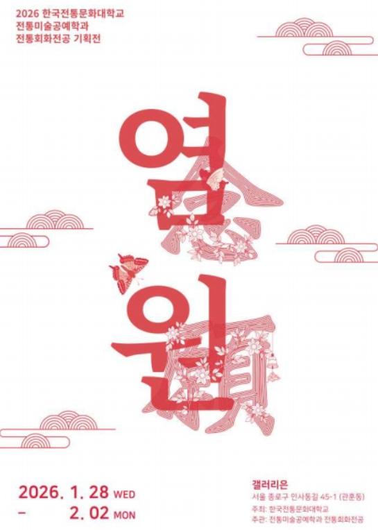 [중앙뉴스라인, 우제헌기자] 국가유산청 한국전통문화대학교는 1월 28일부터 2월 2일까지 갤러리 은(서울 종로구)에서 전통미술공예학과 전통회화전공 재학생 42명과 교수진이 전통기법과 재료를 바탕으로 제작한 전통회화 작품들을 선보이는 기획전시 '염원(念願)'을 개최한다.
