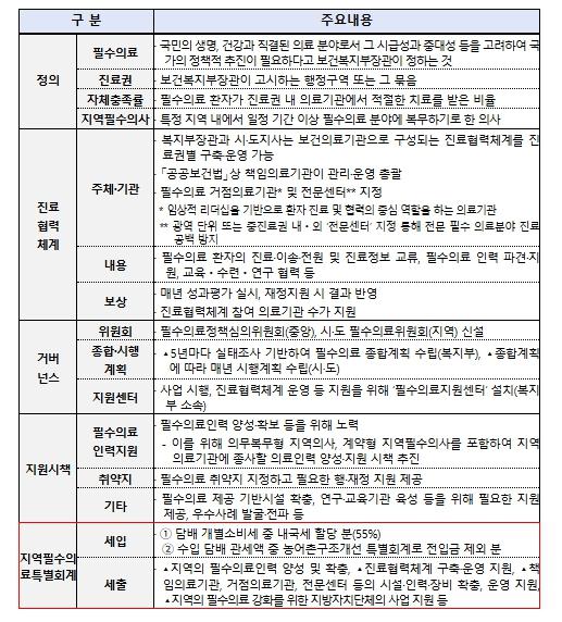 특히, 법 통과 이후부터는 복지부와 시‧도 간 ‘(가칭)지역필수의료법 정례협의체’를 구성하여, 필수‧공공의료 투자 방안과 하위법령 제정 등 구체적인 실행계획을 심도 있게 논의할 계획이다.