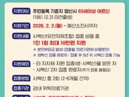 양산시보건소 관계자는 해당 사업 본격 시행을 앞두고 “예방접종은 치료 이전에 시민의 삶을 지키는 가장 효과적인 건강투자”라며 “2026년에는 어르신의 건강한 노후와 임신·출산 가정의 안전을 함께 책임지는 출산·고령친화 건강도시 양산을 만들어 가겠다”고 포부를 밝혔다.
