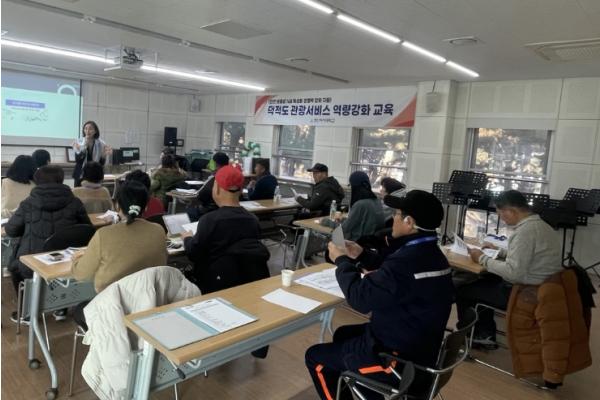 교육은 총 8일간(1일 4시간), 총 32시간 과정으로 ▲친절 마인드 및 고객응대 ▲식당·숙박 실무 ▲SNS 마케팅 및 관광 홍보 ▲인권친화적 관광환경 조성 ▲관광지 안전관리 및 응급처치 ▲지역 연계 관광상품 기획 등 현장에서 즉시 활용 가능한 실무 중심 커리큘럼으로 구성됐다.