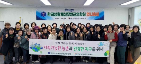[중앙뉴스라인, 이상권기자] 무안군은 지난 23일 무안군농업기술센터 회의실에서 한국생활개선무안군연합회 연시총회와 함께 ‘함께 그리는 2050 탄소중립’ 실천 결의대회를 개최했다고 밝혔다.