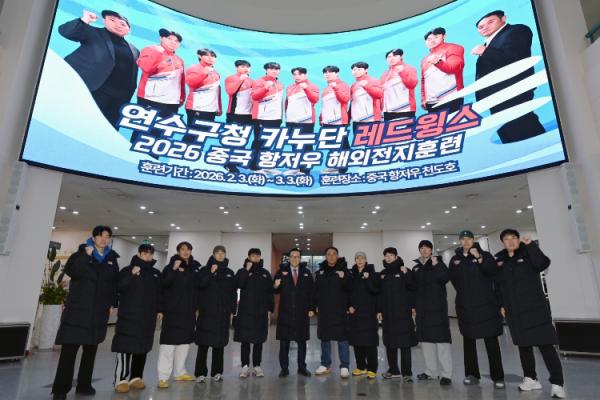 [중앙뉴스라인, 우제헌기자] 연수구의 직장운동경기부 카누팀 ‘레드윙스’가 2026년 시즌 새로운 도약을 위해 중국 항저우로 동계 전지훈련을 떠났다.