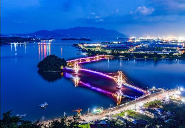 대교 양쪽으로 펼쳐진 광양제철소와 광양항은 낮에는 웅장한 스케일을, 밤에는 찬란한 장관을 선사하며 광양의 역동적 미래를 강렬히 각인시킨다.