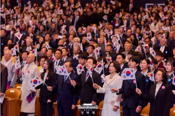 [중앙뉴스라인, 우제헌기자] 이재명 대통령은 1일 "우리 선열들이 주창했고 국민이 이어온 3·1혁명의 정신이야말로 민주주의와 평화가 흔들리는 위기의 시대를 살아가는 세계인들을 새로운 희망으로 인도할 밝은 빛"이라고 말했다.