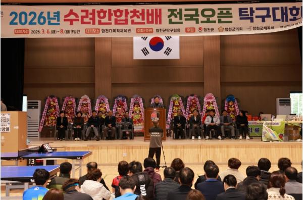 [중앙뉴스라인, 우제헌기자] 합천군은 6일부터 8일까지 합천 다목적체육관에서 열린 ‘2026 수려한합천배 전국오픈탁구대회’가 성황리에 마무리됐다고 밝혔다.