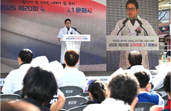 [중앙뉴스라인, 우제헌기자] 경상북도는 3월 14일 구미시 구평별빛공원에서 열린 ‘제20회 구미인동 3․1문화제 기념식’에 참석해 3․12 유가족과 보훈단체, 구미 시민들과 함께 독립운동의 숭고한 뜻을 기리고 의미를 되새겼다.