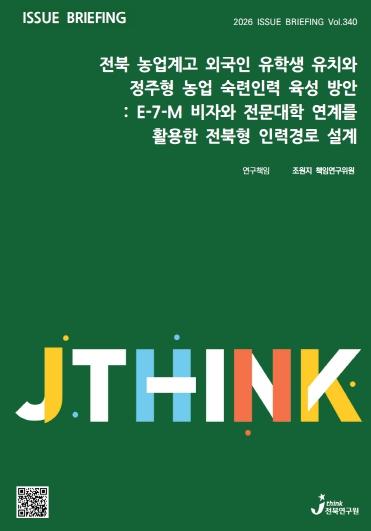 조원지 책임연구위원은 ‘전북이 선제적으로 농업계고 유학생-E-7-M-정주 모델을 설계해 정부에 제안한다면, 농업·농촌 인구위기 대응에서 전북형 선도 모델을 만들 수 있다’며, ‘이번 이슈브리핑을 계기로 농업 인력정책·농촌 인구정책·외국인 유학생 정책을 하나의 패스웨이 관점에서 통합적으로 논의하기를 바란다’고 말했다.
