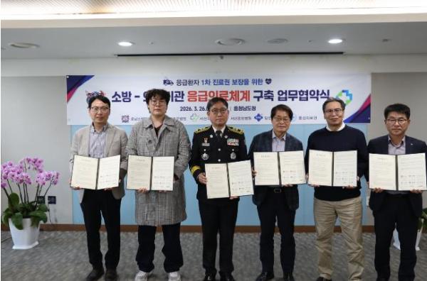 [중앙뉴스라인, 양병남기자] 충남소방본부는 26일 도청에서 도내 5개 응급의료기관과 ‘충남소방-의료기관 응급의료체계 구축 업무협약’을 체결했다.