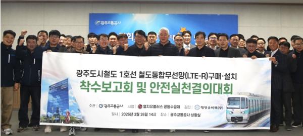 공사는 26일 본사 4층 상황실에서 '광주도시철도 1호선 철도통합무선망(LTE-R) 구매설치' 사업의 착수보고회 및 안전실천 결의대회를 개최했다고 밝혔다.