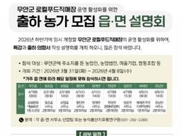 이번 설명회는 기존 참여농가와 신규 참여를 희망하는 농업인을 대상으로 진행되며 ▲맛뜰무안 먹거리 통합플랫폼 구축사업 설명 ▲로컬푸드 직매장 운영 절차 안내 ▲출하 의향 조사 및 현장 상담 등으로 구성된다.