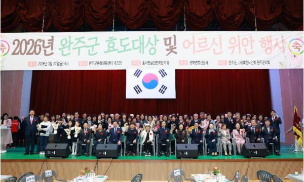 [중앙뉴스라인, 김용범기자] 효사랑실천전북협의회가 주관한 ‘2026년 완주군 효도대상 및 어르신 위안행사’가 27일 500여 명이 참석한 가운데 완주군 문화체육센터에서 성료됐다.