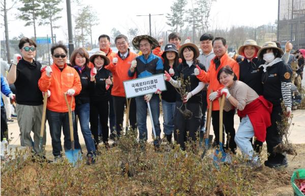 이날 행사에는 도시숲 119, 평택시민정원사회, 평택새마을회, 평택여성기업인협의회, 미51비행단 임무지원전대, 한전MCS 평택지점·서평택지점, ASML 등 30개 단체 시민 660여 명이 참여해 함박산중앙공원 내 녹지대에 영산홍, 남천, 삼색조팝, 사철나무 등 9천8백여 주의 나무를 심어 함박산 중앙공원의 경관을 개선했다.