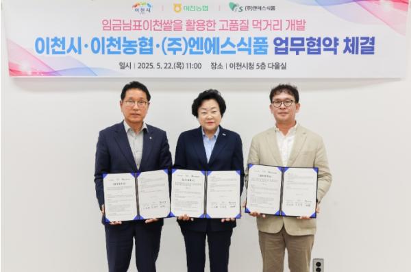 [중앙뉴스라인, 한하림기자] 이천시는 5월 22일 시청 5층 다올실에서 이천농협, 엔에스식품과 함께 이천쌀 미래 성장을 위한 전략적 파트너십 업무협약식을 개최했다.
