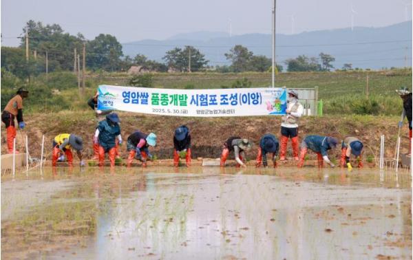 [중앙뉴스라인, 전은희기자] 영암군이 5/30일 농업기술센터 벼 시험포장에서 손모내기를 실시하고, 밥맛 좋은 쌀 품종의 생산력 검정 예비시험을 위한 시험구 조성에 들어갔다.