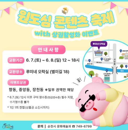 참여자들은 7일 12시 이후에 3만 원 이상 구매한 상가 영수증을 제출하면 순천사랑상품권 3천원권을 지급받을 수 있다.
