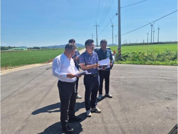 이날 영광군수는 올해 준공된 참조기산업연구센터 진입도로를 직접 주행하며 현장을 살폈다.
