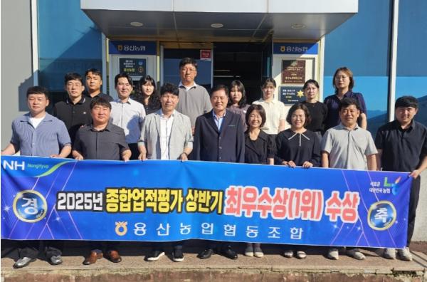 용산농협(조합장 박철환)은 2025년 상반기 종합업적평가 전국 최우수상과 클린뱅크 금등급을 수상하는 쾌거를 달성했다. 지난 2024년 종합업적평가에서 전국 최우수상과 클린뱅크 금등급 수상에 이어 올해까지 종합업적평가 최우수상과 클린뱅크 금등급에 도전함으로써 2연패 수상에 힘찬 도약을 다졌다.