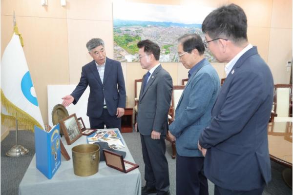 육동한 춘천시장은 21일 시청 접견실에서 캠프페이지 카투사 출신 방선복씨와 정철수씨로부터 당시 캠프페이지 복무와 관련된 소중한 자료들을 전달받았다.
