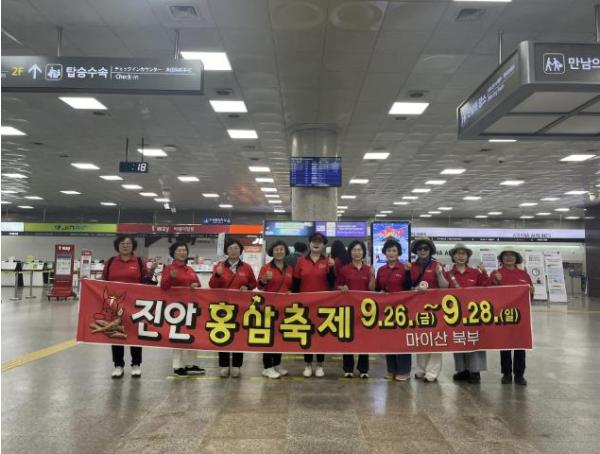 홍보단들은 홍삼 티셔츠를 입고 축제 리플릿을 배부하며 항공기를 이용하는 내·외국인 관광객들에게 진안홍삼의 우수성과 축제 참여를 적극적으로 알렸다.