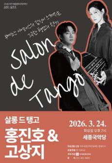 여주세종문화관광재단이 오는 3월 24일, 문화가 있는 날 사업으로 첼로와 반도네온, 피아노가 어우러진 특별한 공연 '살롱 드 탱고 : 홍진호 & 고상지'를 선보인다.이번 공연은 재단이 2026년 특집으로 기획