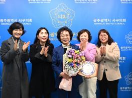 광주 서구의회 고경애 의장은 서구 보육사업발전에 기여한 공로로 광주광역시 국공립어린이집연합회로부터 감사패를 전달받았다고 밝혔다. 국공립어린이집연합회 서구지회장은 “고경애 의장은 투철한 봉사