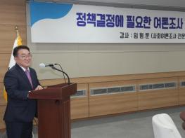 광주광역시의회는 21일 사회여론조사 전문가를 초청해 의원 및 의회사무처 직원 등을 대상으로 강연을 실시했다. 강사로 나선 임형문 ㈜폴인사이트 대표는 “정책결정에 필요한 여론조사 방법과 활용”을 주