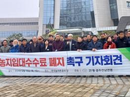 전남도의회 박형대 의원(진보당,장흥1)은 지난 2월 15일 한국농어촌공사 앞에서 전국농민회총연맹 광주전남연맹과 함께 농지임대수수료 폐지를 촉구하는 기자회견에 참석했다.한국농어촌공사는 농지 소유자