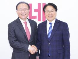 안민석 국회의원은 22일 정명근 화성시장을 만나 산수화 상생협력 정신을 바탕으로 오산·화성시 상생발전을 위한 협력사업을 제안했다. 안 의원은 10여년 넘게 오산·수원·화성시 시장과 국회의원들에게 세