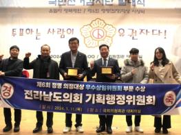 전라남도의회 기획행정위원회가 1월 11일 한국유권자중앙회가 주관하는 '정명(正ㆍ明)의정대상' 에서 ‘우수 상임위원회’로 선정됐다.정명(正ㆍ明)의정대상은 사단법인 한국유권자중앙회가 정의롭고 공정하