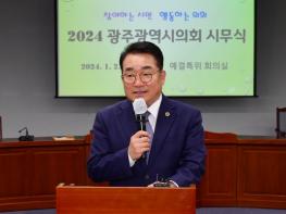 광주광역시의회는 2일 예결특위회의실에서 정무창 의장을 비롯한 사무처 직원 등 100여명이 참석한 가운데 갑진년 시무식을 갖고 새해 업무를 시작했다. 이날 시무식에서는 행안부 주관 우수조례 기관표창