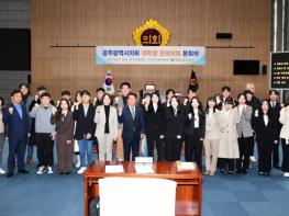 광주광역시의회는 11월 29일, 시의회 본회의장에서 조선대학교·전남대학교와 공동으로 ‘2023년 대학생 모의의회 본회의’를 개최했다고 밝혔다.이날 본회의에는 대학생 모의의회 의원 23명과 ▲광주광역시