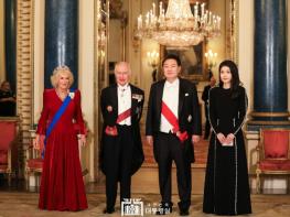 영국을 국빈 방문 중인 윤석열 대통령 부부는 11월 21일 저녁 찰스 3세 국왕이 버킹엄궁에서 주최한 국빈 만찬에 참석했습니다. 만찬에는 우리 공식 수행원과 기업인, 영국의 각계 주요 인사 180여 명이 참