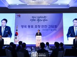 찰스 3세 영국 국왕의 초청으로 영국을 국빈 방문 중인 윤석열 대통령은 김건희 여사와 함께 오늘(현지시각 11. 20, 월) 오후 현지 동포를 초청하여 만찬을 겸한 간담회를 했다. 이번 간담회는 영국 전역에