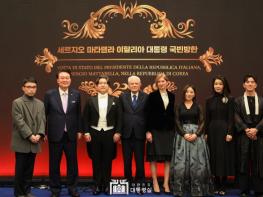윤석열 대통령 부부는 11월 8일 한-이탈리아 정상회담을 마치고 청와대 영빈관에서 마타렐라 이탈리아 대통령과 영애를 초청해 공식만찬을 가졌다.대통령 부부는 영빈관 1층에서 마타렐라 이탈리아 대통령과