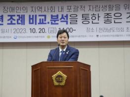 전라남도의회 서동욱 의장은 20일 전라남도의회 초의실에서 열린 ‘전국 장애인 관련 조례 비교·분석을 통한 좋은 조례 만들기’ 토론회에 참석했다.이날 토론회는 김미경 전남도의원(정의당, 비례)과 김철