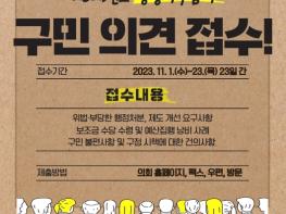 영등포구의회는 11월 1일부터 11월 23일까지 23일간 2023년도 행정사무감사 구민 의견 수렴을 실시한다. 이번 구민 의견 수렴은 2023년도 행정사무감사에 앞서 위법·부당한 행정처분 또는 예산 낭비 사례 등