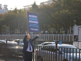 더불어민주당 김원이 의원(목포시, 보건복지위)이 16일(월) 오전, 서울 용산 대통령실 앞에서 전남권 의대신설, 목포의대 유치를 촉구하는 1인 호소를 했다. 정부의 의대정원 증원 계획이 조만간 발표될 예