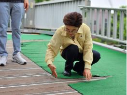 양천구의회 임정옥 의원(더불어민주당, 신정6·7동)이 장마철을 대비하여 4일 오전, 양천구청 관계자 및 주민과 함께 신정차량기지 보도 육교 현장 점검을 실시했다.30년 이상 주민들의 주요 통행로로 사용된