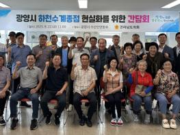 전라남도의회는 지난 8월 22일 광양시 수산인연합회 회의실에서 ‘광양시 하천수계 종점 현실화를 위한 간담회’를 개최했다.이번 간담회에는 강정일 전남도의원을 비롯해 서영배·박철수 광양시의원, 전남도