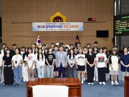 광주광역시의회는 8월 22일 오전 10시 30분 시의회 본회의장에서 북성중학교 학생들을 대상으로 ‘제88회 광주광역시의회 학생 모의의회’를 개최했다.이날 행사에는 북성중학교 학생 34명이 참여했으며, 박