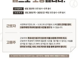 인천광역시선거관리위원회는 6월 3일 실시하는 제21대 대통령선거에서 투표하려는 근로자가 사전투표기간(5월 29일∼30일)과 선거일(6월 3일)에 모두 근무하는 경우'공직선거법'제6조의2에 따라 고용주에게