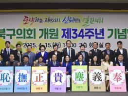 광주 북구의회가 개원 34주년을 맞아 15일 3층 대회의실에서 기념행사를 개최했다고 밝혔다.기념행사는 북구의원, 북구청장, 광주시의원, 사회단체장, 주민자치회장, 주민 등 150여 명이 참석했으며, 기념사