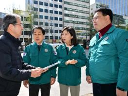 최호정 서울특별시의회 의장은 15일 땅꺼짐 가능성이 있다는 신고가 접수된 시청역 8번 출구 현장을 급히 방문해 점검했다. 현장은 전날인 14일 오후 9시 50분쯤, 지하철 2호선 시청역 8번 출구 앞 도로에