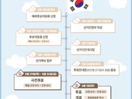 ■ 제21대 대통령선거 주요 선거일정· 4월 4일(금)부터 예비후보자등록 신청· 5월 6일(화) ~ 5월 10일(토) 선거인명부 작성· 5월 10일(토) ~ 5월 11일(일) 후보자등록 신청매일 오전 9시 ~ 오후 6시· 5월 12