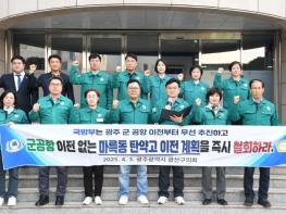 광산구의회가 3일 ‘광주 군 공항 이전 없는 마륵동 탄약고 이전 중단 촉구 성명서’를 발표했다. 광산구의회는 공병철 의원(더불어민주당, 신흥동·우산동·월곡1·2동·운남동)이 대표발표한 성명서를 통해 최