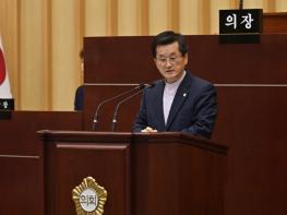 김태완 광산구의원(더불어민주당, 수완동·하남동·임곡동)이 26일 열린 제295회 광산구의회 임시회 제2차 본회의에서 안정적인 재정 여건을 위한 기준인건비 상향 등 세원 확충의 노력을 당부하는 5분 자유발