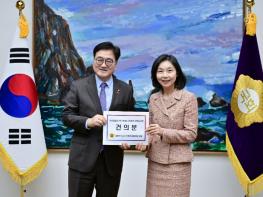 최호정 서울특별시의회 의장은 23일 우원식 국회의장을 만나 지방의회법 제정, 의원 1명당 1정책지원관 확대 등을 건의했다. 최 의장은 이날 국회 사랑재에서 진행된 대한민국시도의장협의회와 국회의장과의