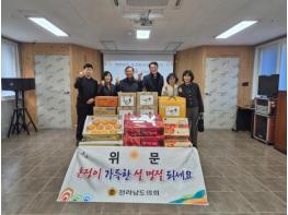 전라남도의회 교육위원회 김정희 위원장(더불어민주당, 순천3)은 1월 21일 설 명절을 앞두고 순천시에 소재한 사회복지시설인 ‘순천조례노인복지센터’를 방문하여 위문품을 전달하고 시설 관계자의 노고에