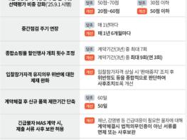 조달청이 '용역 다수공급자계약 관련 행정규칙 2종'과 관련해 2단계경쟁 시 가격평가 비중 축소 등 조달기업의 부담은 덜어주고, 제도운영의 효율성은 높이는 방향으로 개선해 2025년 1월 6일부터 시행한다.